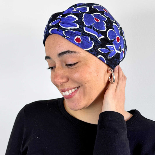 Thank you so much for my beautiful Vintage Bow Turban Cap. It's so soft and fits perfectly. The colours are gorgeous and flattering. I feel confident and pretty again 💜
