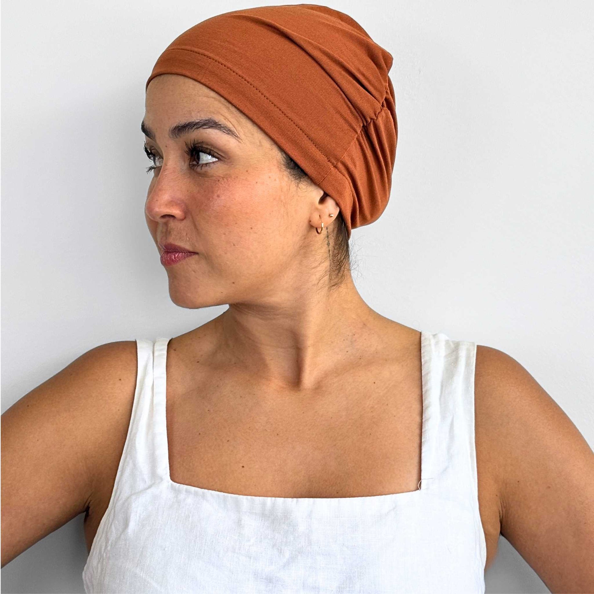 While other brands mass-produce, we craft each item in Melbourne using natural, breathable fabrics that are soft enough for sensitive scalps, yet stylish enough for everyday wear. We understand what it feels like to want to hide away—and what it takes to feel seen again.
