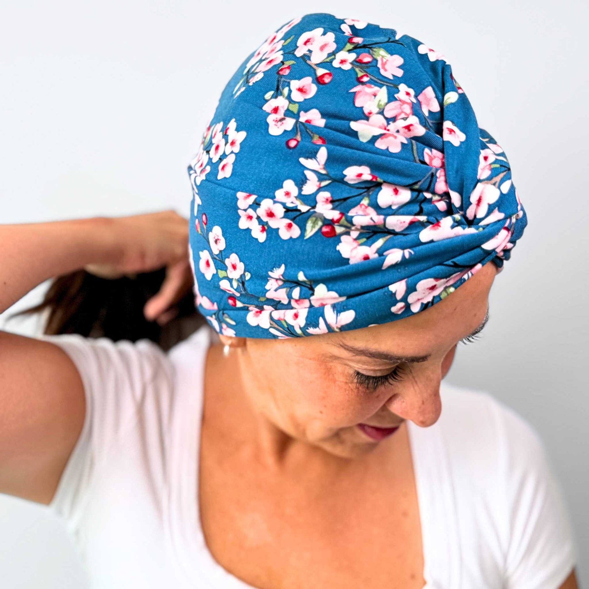 Designed with care in Melbourne, our handmade turban chemo hat offers both comfort and style, perfect for those undergoing chemotherapy. Crafted from premium soft, double-layer fabric, this chemo hat provides a snug, gentle fit without irritation—ideal for sensitive scalps. The elegant knot on top adds a touch of sophistication, elevating your look while keeping you comfortable all day long.