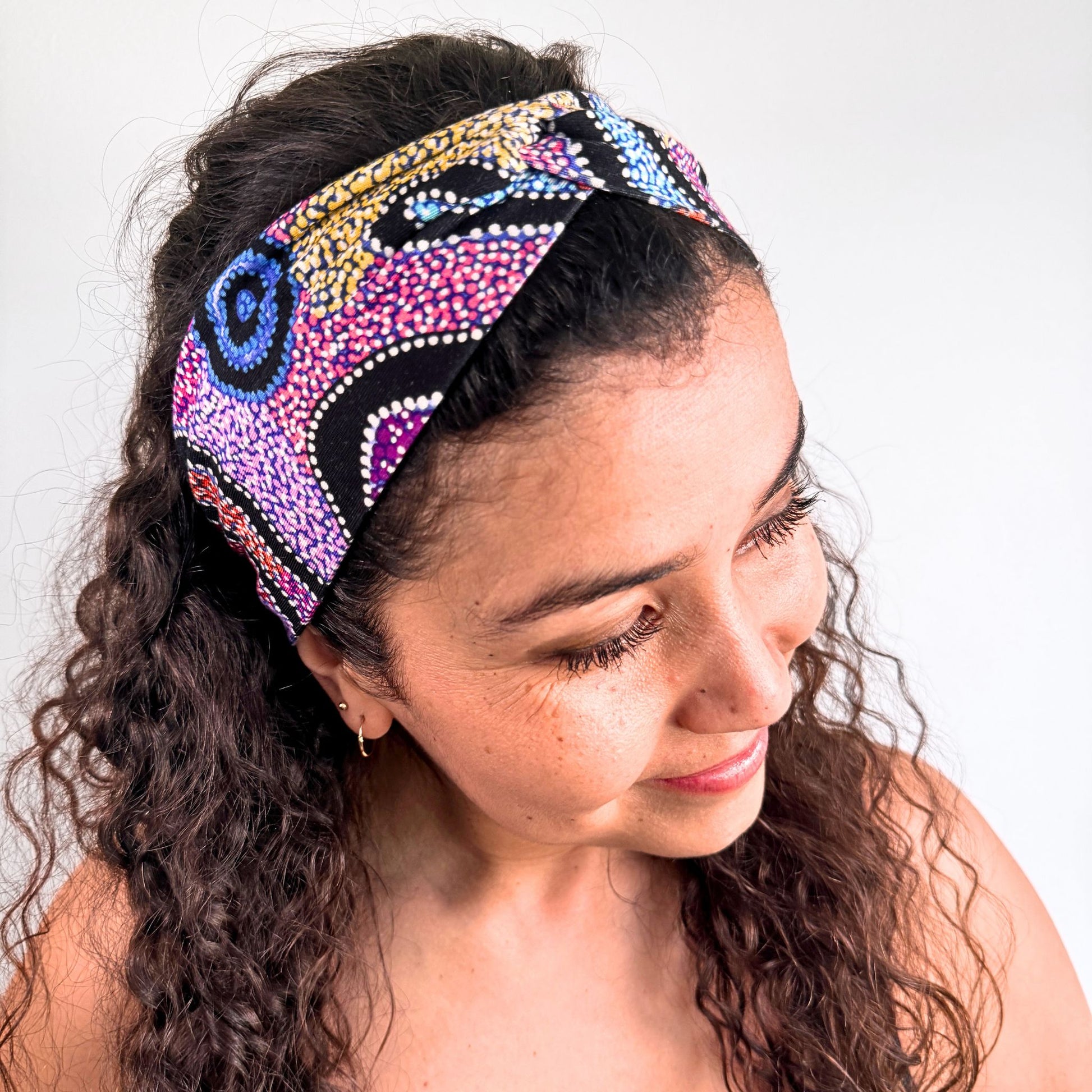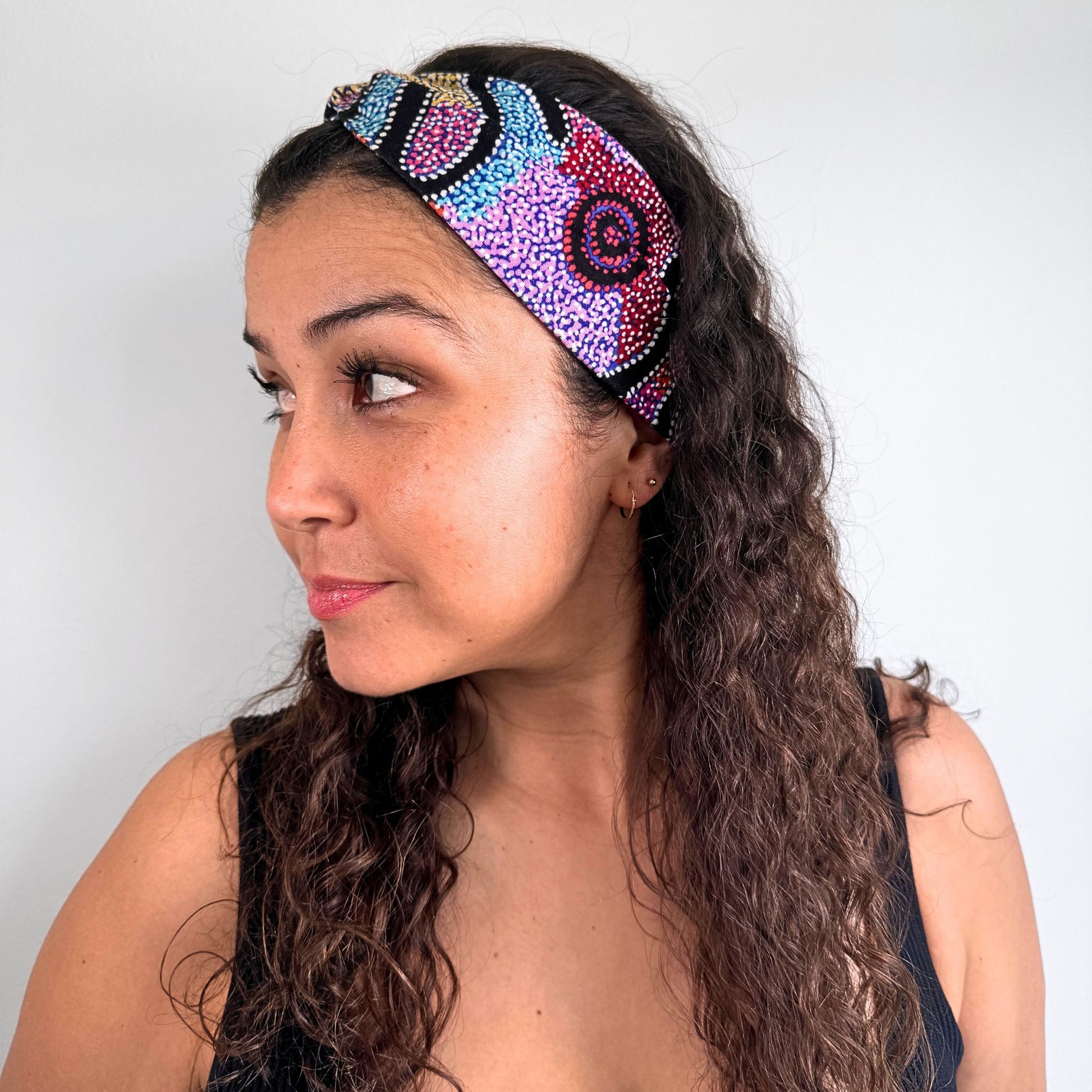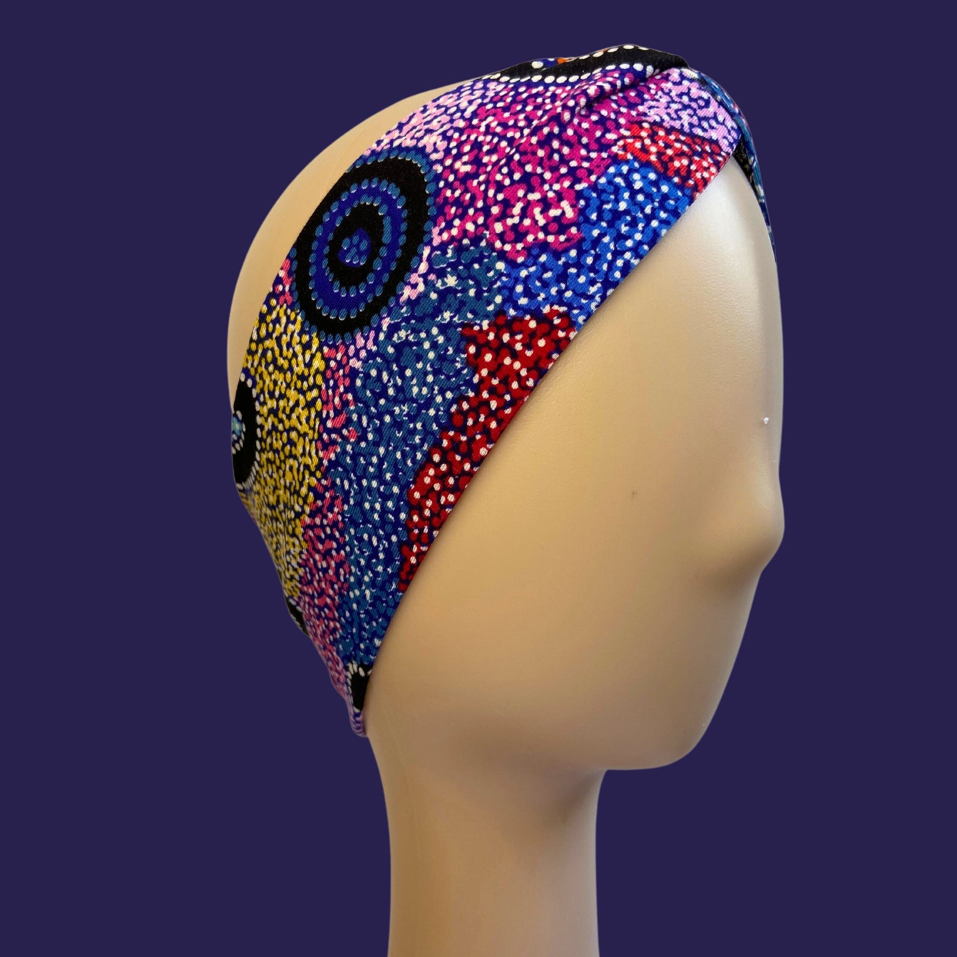 Explore our latest collection, showcasing stunning Aboriginal patterns that celebrate Australia’s rich heritage. Perfect for any occasion, from casual outings to special events, this headband is the ultimate accessory to complete your look.