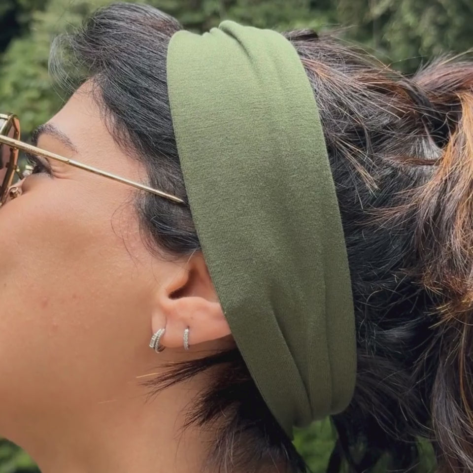 The headband is designed as a versatile "one size fits all," with dimensions of 8 W and 23 L cm. Its design allows for all-day wear without causing any pressure on the head, thanks to its soft, stretchy material that conforms to your shape while remaining secure and in place.