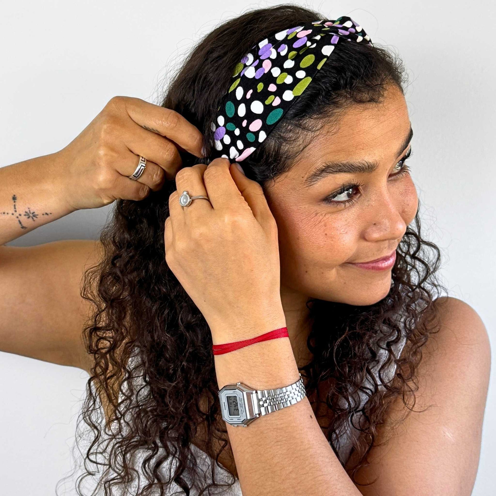 Our headbands combine 97% cotton elastane with spandex, rayon, or Ecovero for a soft, high-quality fabric that remains comfortable and secure all day. The blend offers breathability, gentle stretch, and a snug fit without pressure.