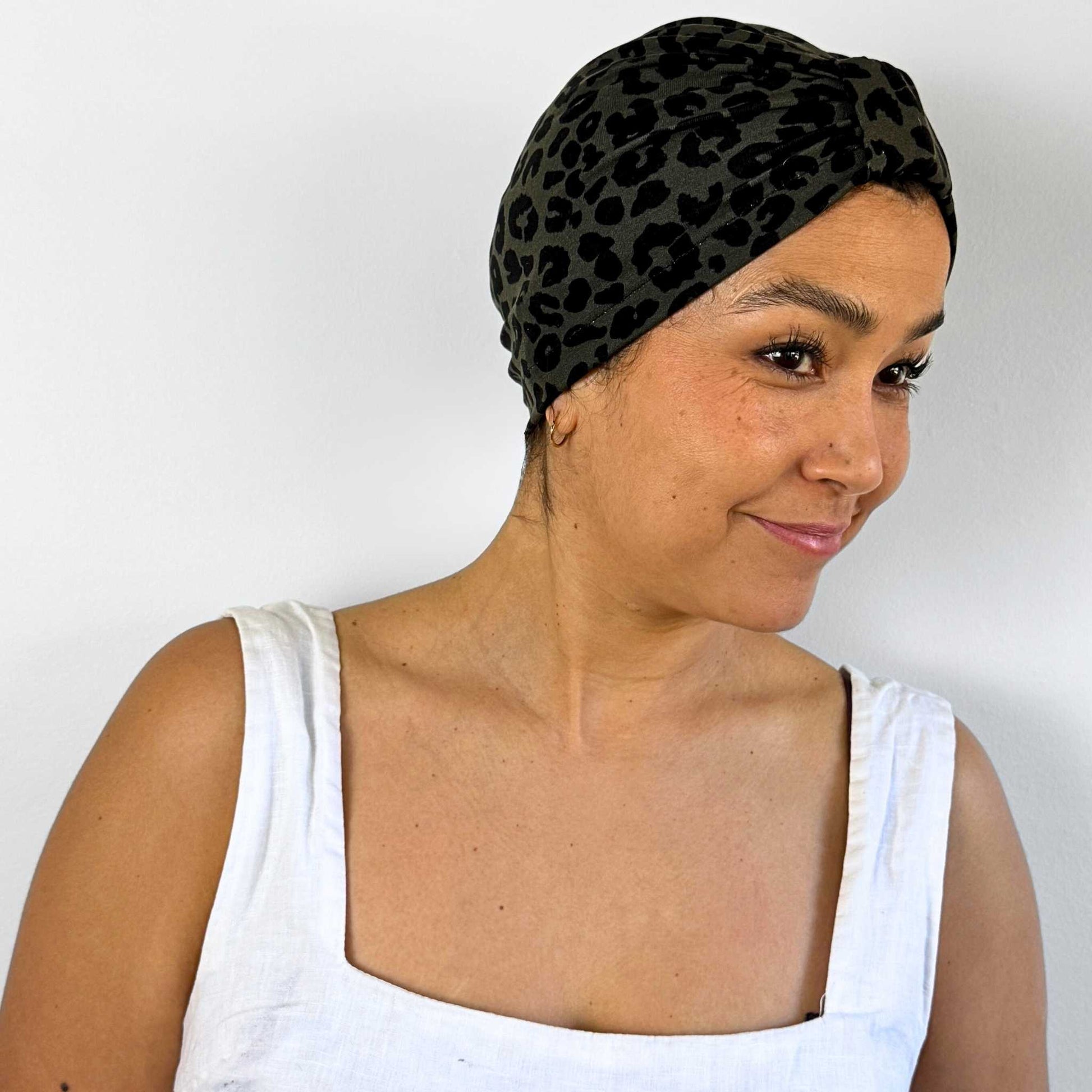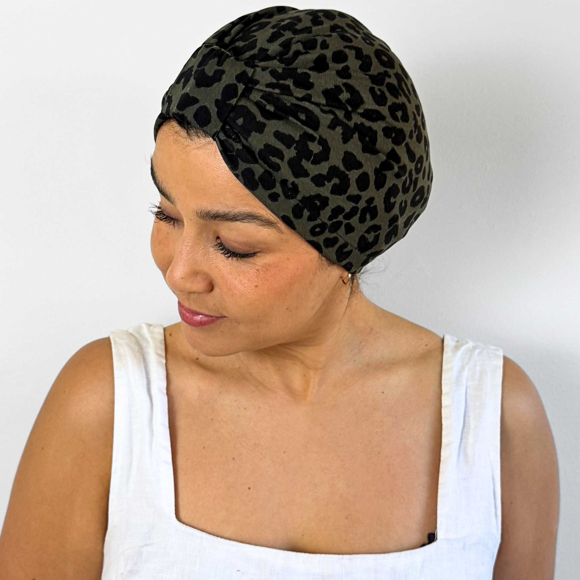 Leopard Green Turban Bow Cap