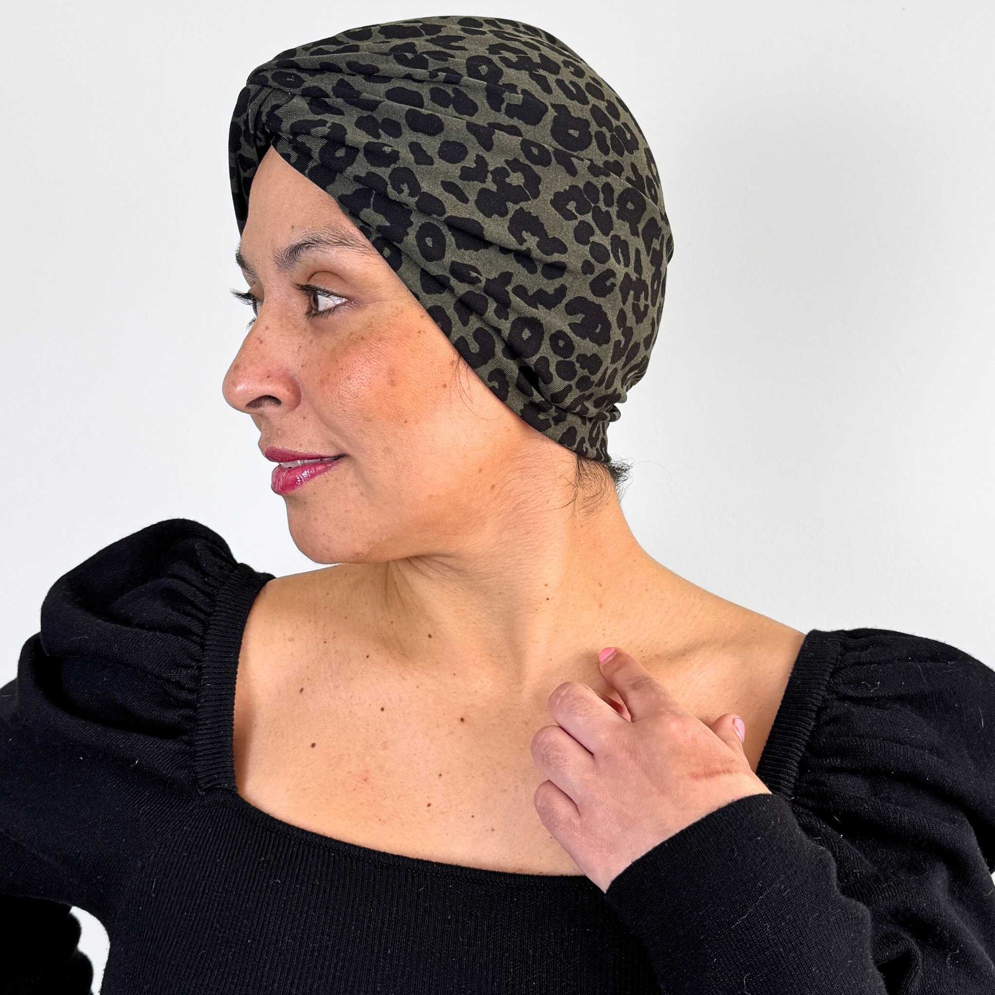 Leopard Green Turban Hat