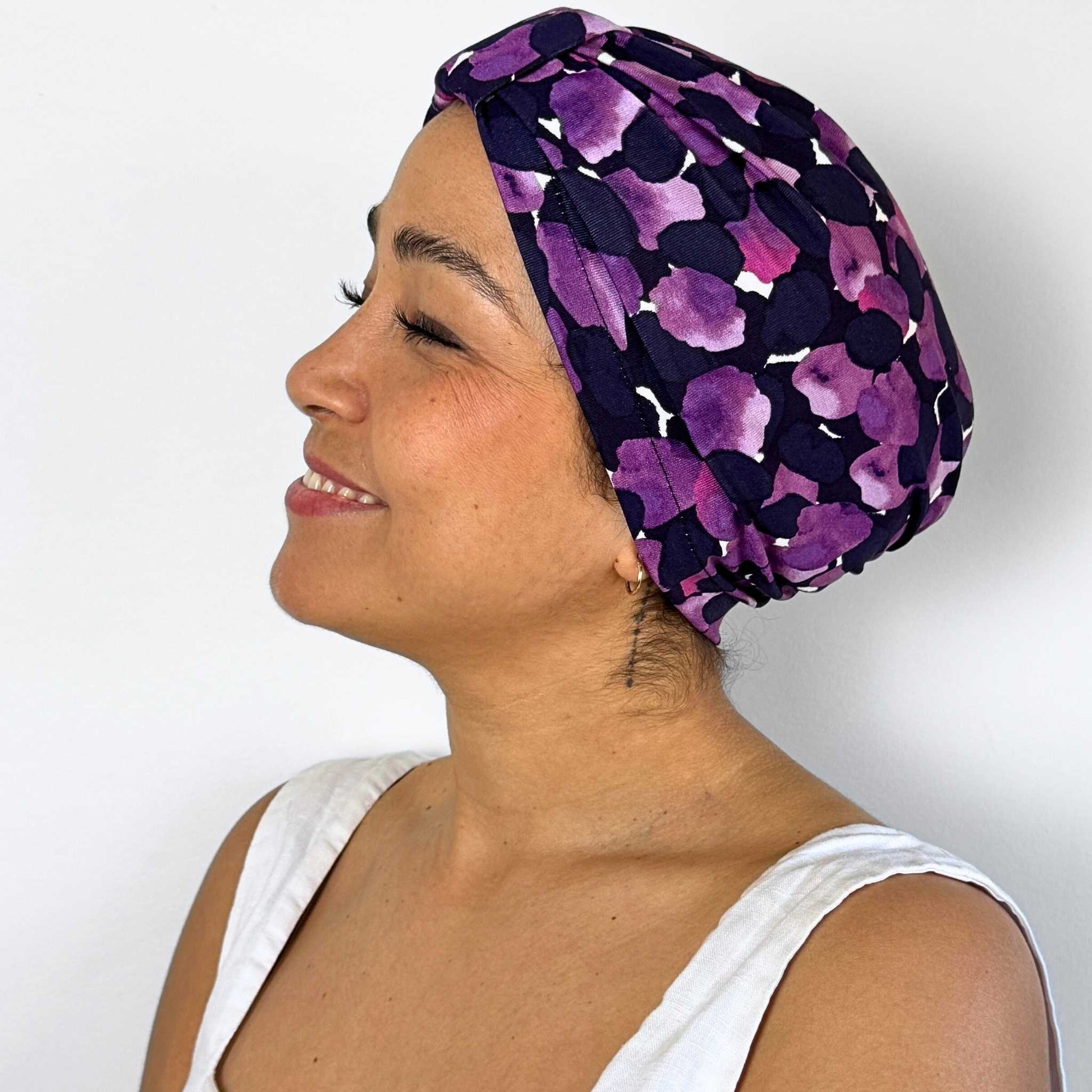 Thank you so much for my beautiful Vintage Bow Turban Cap. It's so soft and fits perfectly. The colours are gorgeous and flattering. I feel confident and pretty again 💜