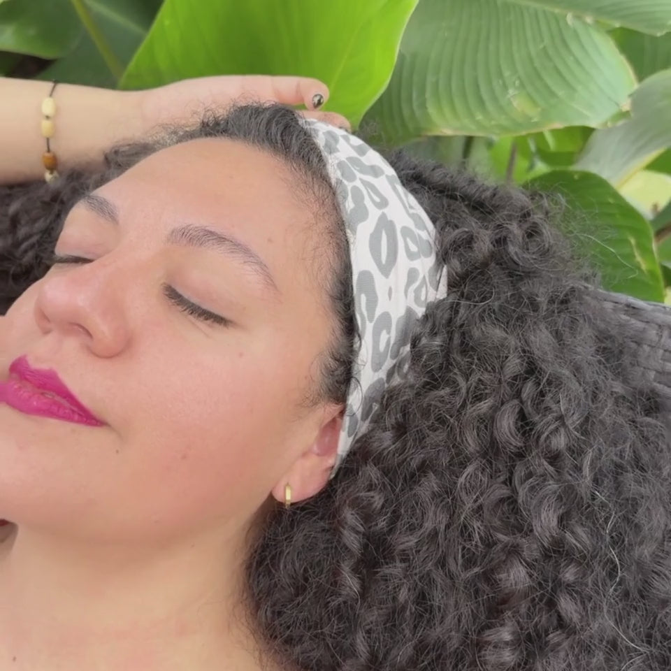 The headband is designed as a versatile "one size fits all," with dimensions of 8 W and 23 L cm. Its design allows for all-day wear without causing any pressure on the head, thanks to its soft, stretchy material that conforms to your shape while remaining secure and in place.